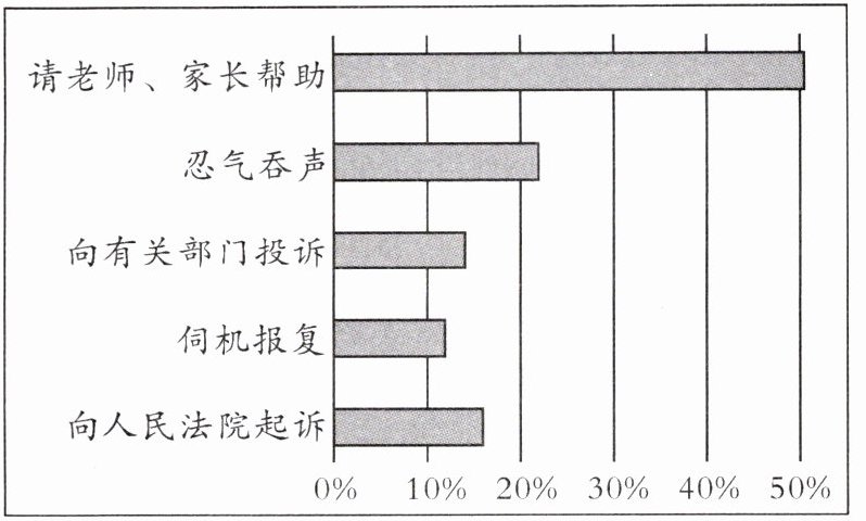 4. (2025·安徽灵璧县期末)某中学法治社团的同学围绕“合法权益受到侵害时,你的做法是什么”这一问题在学校展开调查,调查结果如图表所示。由图表数据可推断该校同学( )