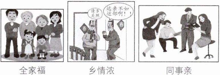 (1)问,必须立足三幅漫画,抓住“情境”“社会关系”两个关键词,在组织答案时还要注意情境与社会关系类型一一对应。第