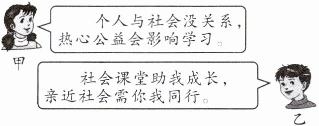 甲 个人与社会没关系,热心公益会影响学习。
