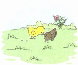 小 黄 鸡 ,小 黑 鸡 ,欢 欢 喜 喜 在 一 起 。