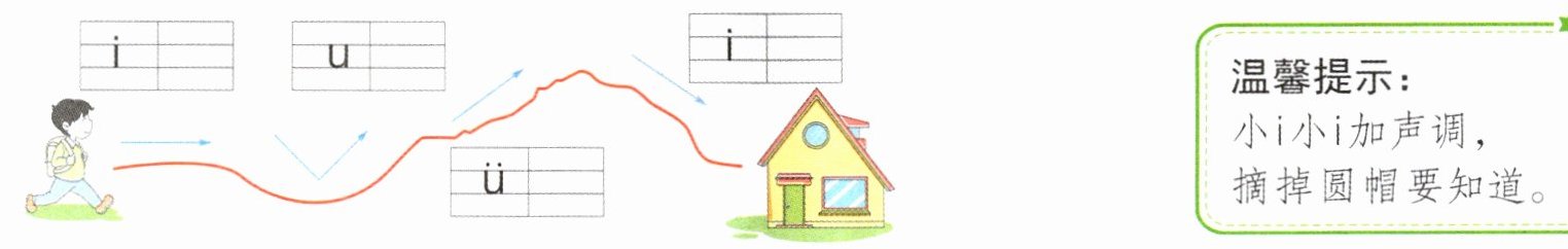 根 据 阳 阳 的 路 线 ,写 出 带 声 调 的 字 母 。