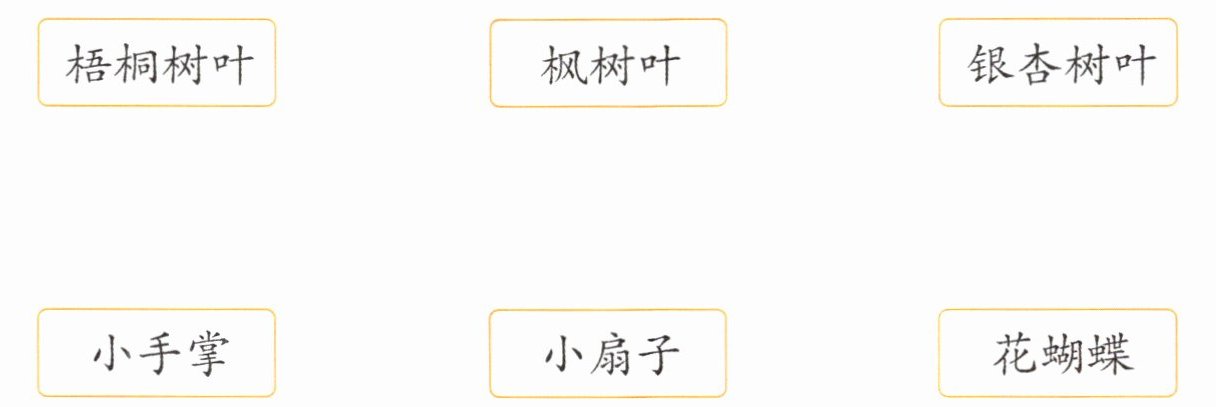 3. 梧桐树叶——花蝴蝶 枫树叶——小手掌 银杏树叶——小扇子