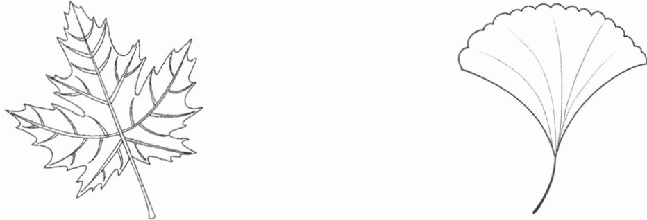4. 提示:左侧的叶子为枫树叶,涂红色;右侧的叶子为银杏树叶,涂金黄色。涂色略。