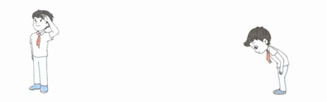 3. 升国旗时,哪位同学的做法是正确的?在括号里画“√”。