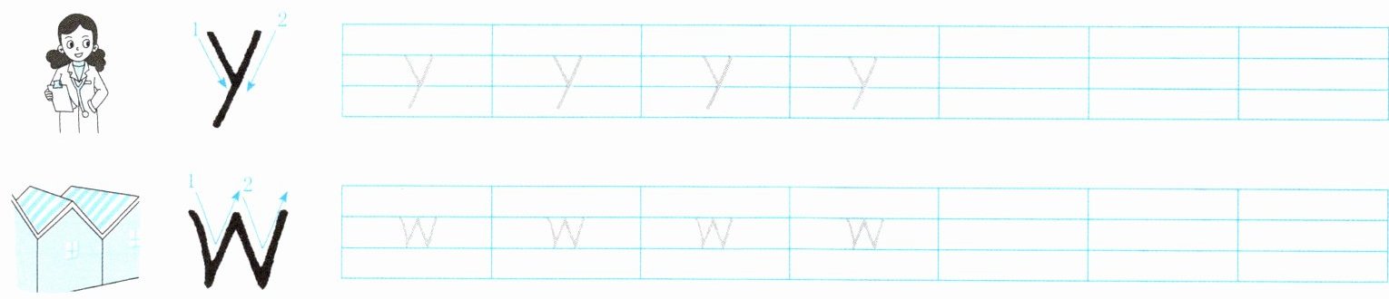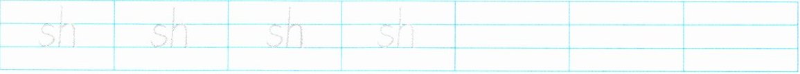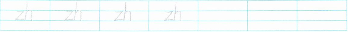 在“zh”对应的四线三格中写四个“zh”;在“ch”对应的四线三格中写四个“ch”;在“sh”对应的四线三格中写四个“sh”;在“r”对应的四线三格中写四个“r”。