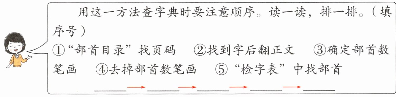 用这一方法查字典时要注意顺序。读一读,排一排。(填序号)