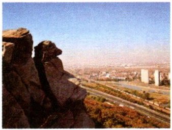 示例:一只猴子,倚着岩石,欣赏山下的风景。