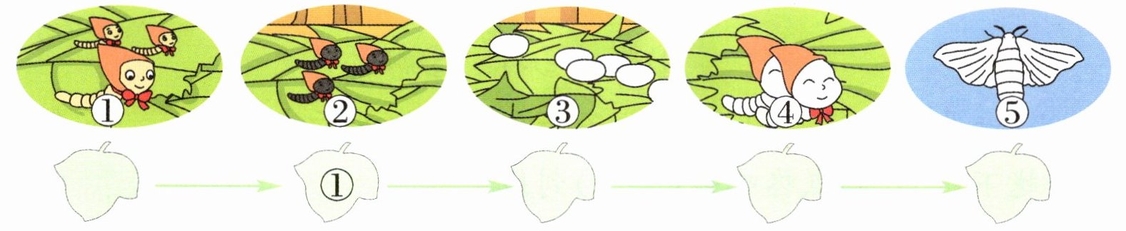 3. 蚕姑娘的生长过程是什么样的?请按顺序填上序号。