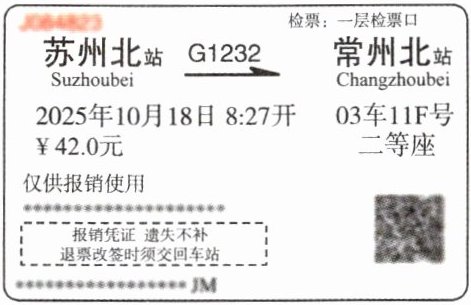 ①苏州北站 ②8:27 ③常州北站 ④03车