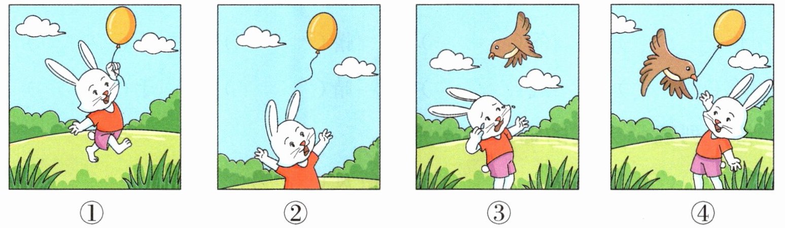 解析:本题考查看图写话的能力。仔细观察图片,四幅图主要讲述了小白兔心爱的气球飞走后,小鸟帮小白兔找回来的故事。用通顺、连贯的语言将故事写出来即可。