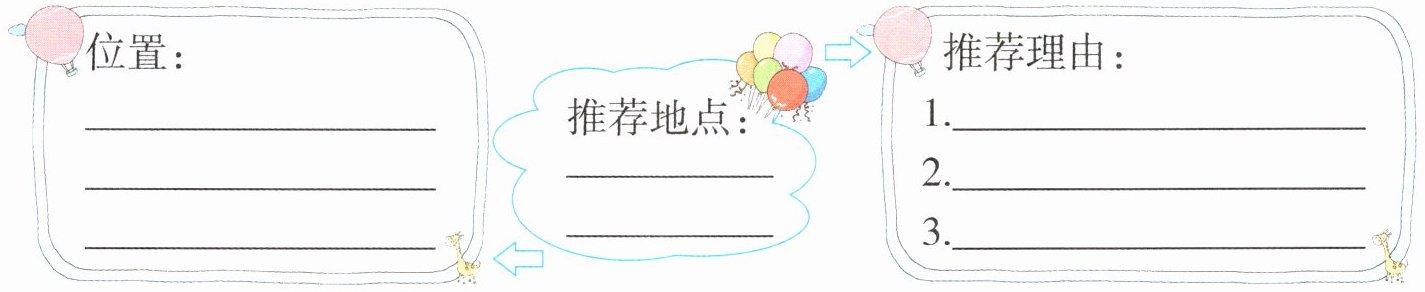 二【梳理思路】请你帮阳阳选择一个要推荐的地方,并完成思维导图。
