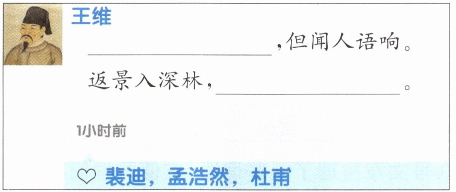 四 新趋势 传统文化【古人朋友圈】公众号文章中还安排了一个创意版块——假如古人有朋友圈。请你读一读,完成练习。