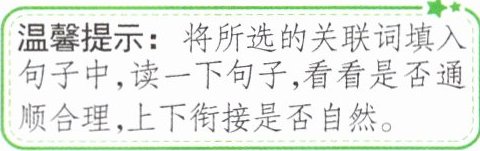 温馨提示:将所选的关联词填入句子中,读一下句子,看看是否通顺合理,上下衔接是否自然。