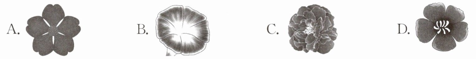 3. 根据欢欢观察到的花的样子,笔记的图片中空白的地方应该放图片( )