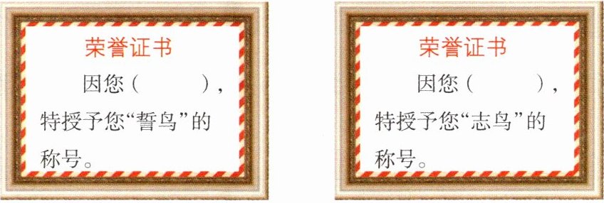 四 新题型 情境实践【结果宣判】本案的最终结果是精卫胜诉。审判团被精卫感动,决定为她颁发荣誉证书。请根据审判团掌握的资料,帮忙填写证书吧!