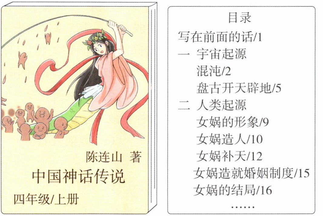 解析:本题考查对目录的理解。从目录来分析,“宇宙起源”这部分的主人公是盘古,“人类起源”这部分的主人公是女娲。