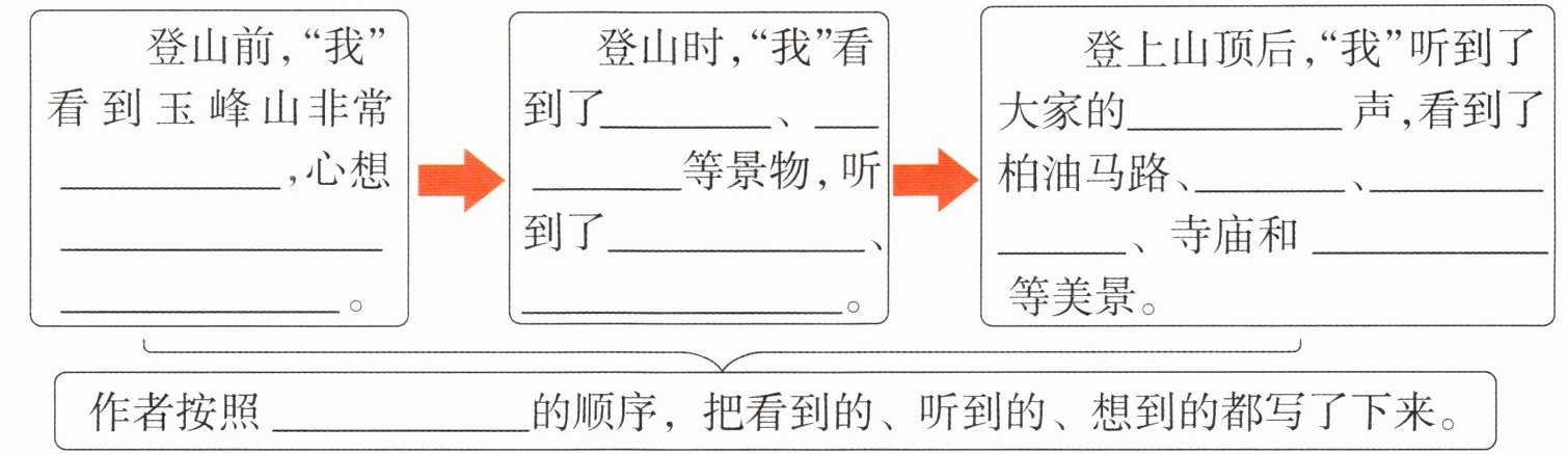 2. 新思维 逻辑梳理作者是如何把登山这件事写清楚的?根据提示填一填。