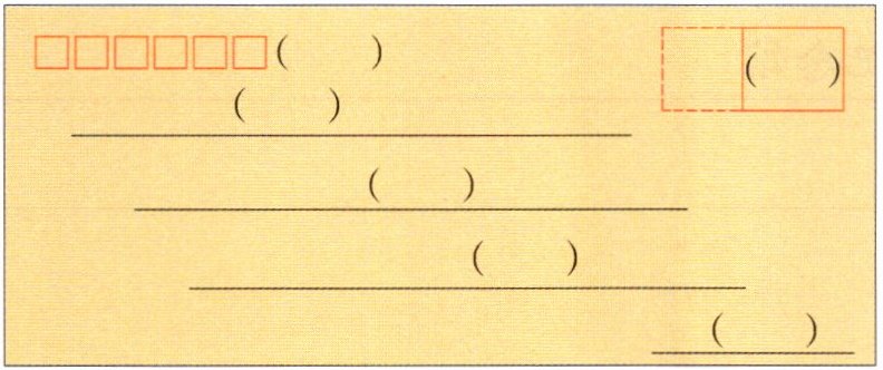 四【学写信封】阳阳根据你的指导写了一封信,请你教教他怎样写信封,好让他把信寄出去。(将序号填在括号里)