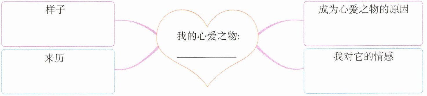 (示例)一套《史记》连环画 样子:四册厚厚的书,棕色的封皮显得很有厚重感。来历:这是舅舅送我的,是第一套属于我自己的书。 成为心爱之物的原因:这套书内容有趣,还陪着我走过了小学前四年的时光。 我对它的情感:这是我最心爱的书,我对它爱不释手。 解析:本题考查理清写作思路的能力。先选择自己喜欢的物品,描述一下它的样子,可以按照由整体到部分或由上到下等顺序有条理地进行介绍;再简单说明心爱之物的来历;然后重点介绍它成为自己的心爱之物的原因,可以回忆与它相关的难忘的、有趣的事情;最后表达对它的喜爱之情。