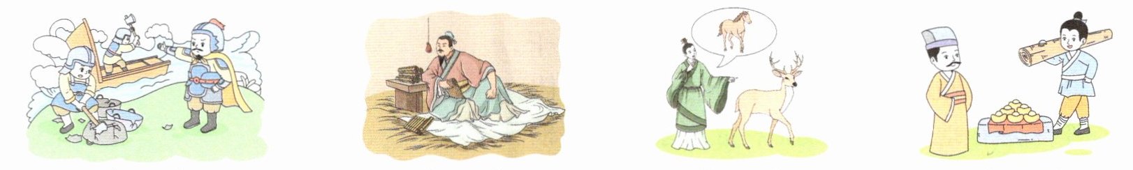 ①三绝 ②为信 ③薪尝 ④谈兵 ⑤釜沉 ⑥鹿为 ⑤ ③ ⑥ ② 解析:本题考查知识拓展。根据积累将成语补充完整,再结合图片中的关键信息选择对应的成语即可。