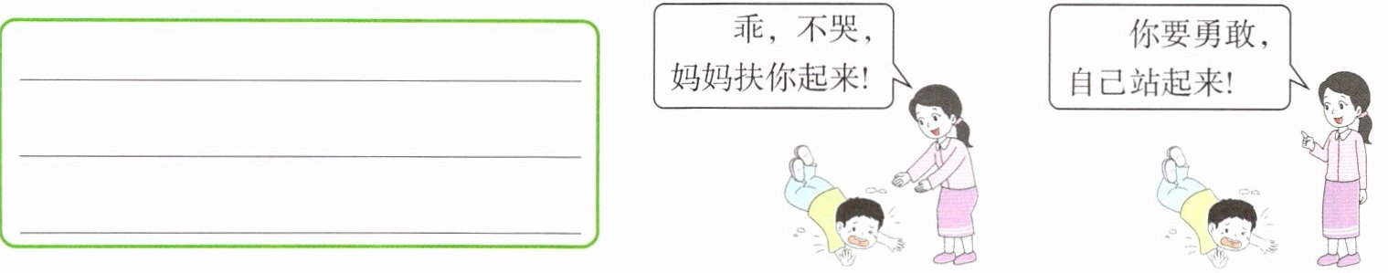 示例:右图中的妈妈在孩子摔倒时鼓励孩子自己站起来,培养了孩子面对挫折的勇气,锻炼了孩子的独立能力。