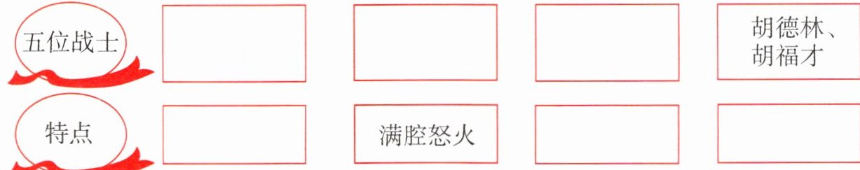 3. 新思维 逻辑梳理 这五位战士分别是谁?他们各有什么特点?结合选段内容将下面的导图补充完整。