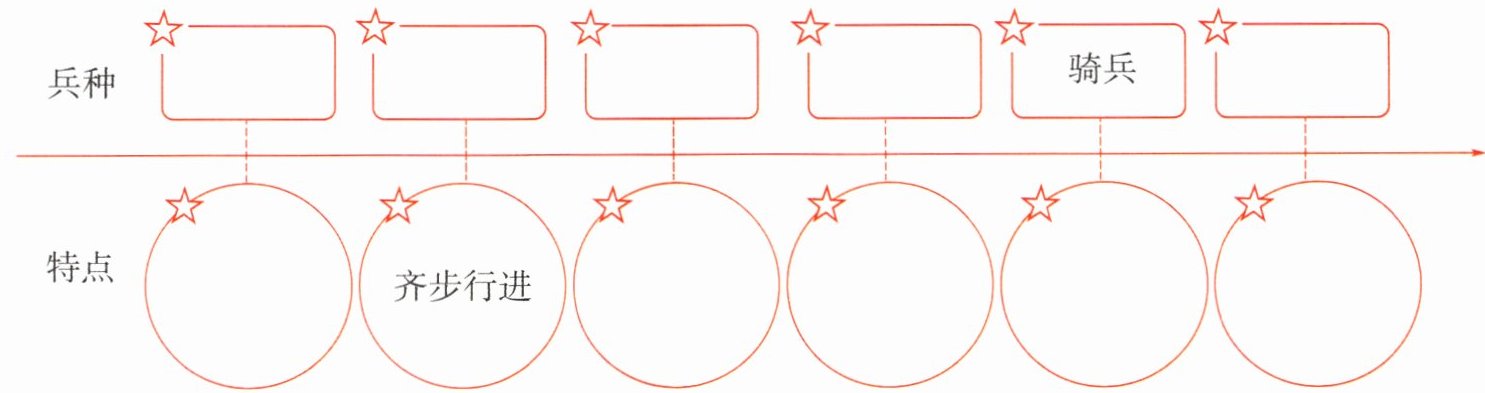 (注:□为兵种,○为特点,其中一个特点已给出“齐步行进”)