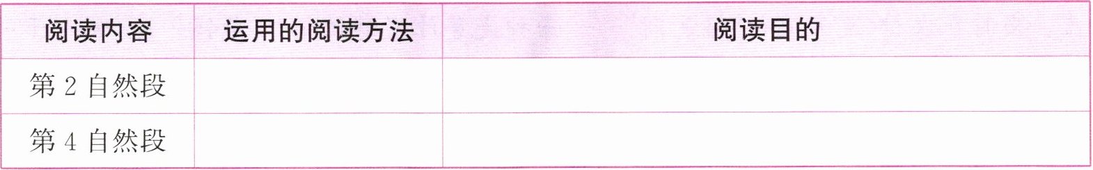1. 阳阳选择第 2 自然段和第 4 自然段来阅读,请你帮他填写下面的表格。