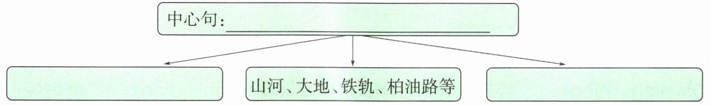 解析:本题考查对课文内容的梳理。《夏天里的成长》一文的中心句是“夏天是万物迅速生长的季节”。围绕这一中心句在第 2~4 自然段分别进行了三个方面的描写,第 2 自然段描写了动植物的生长,第 3 自然段写了山河、大地、铁轨、柏油路等事物的生长,第 4 自然段写了人的生长。