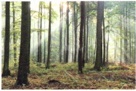 露珠也似乎惊诧于眼前的景色,悄悄地溜到别处游玩去了,地上留下了它们的痕迹,湿湿的,润润的。透过枝叶的间隙,霞光执拗地照在我的脸上、身上。此时,山林上空的晨雾已不见了,而山林之中,却流动着烟波,薄薄的一层,长长的一缕,浓浓的一团,我似乎置身于仙境之中,不禁陶醉了。这时,一束阳光斜射着我的眼睛,我眯起眼来,望着这阳光的恩赐,心里涌起一种庄严、圣洁的感觉。