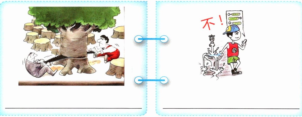 四 下面是阳阳短视频中列举的对地球环境不利的行为,请你各为它们设计一条标语。