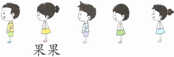 4. 体育课上,果果排第2,当老师说“向后转”后,她排第( ),她前面有( )人,后面有( )人。