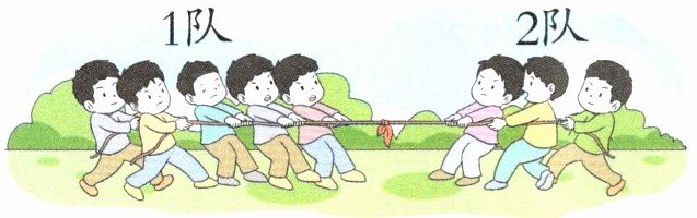 (2)1队去掉(1 2 3)人,两队人数就一样多了。从1队移(1 2 3)人去2队,两队人数就一样多了。(圈一圈)