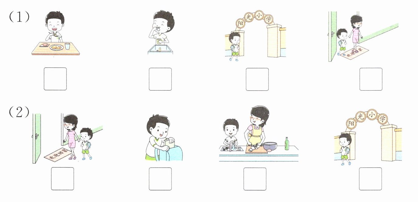 6.(简单推理)你能用学过的数表示乐乐上学前和放学后要做的事情的先后顺序吗?