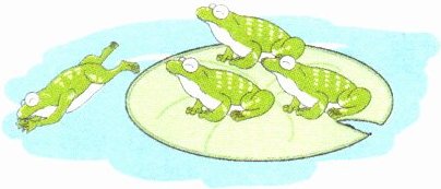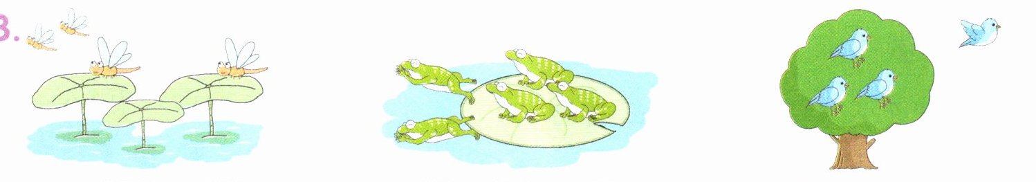 有( )只青蛙,有( )只跳下了水,还剩( )只在荷叶上。