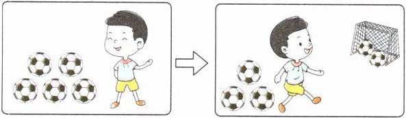 有( )个足球,踢进了( )个,还剩( )个没踢进。