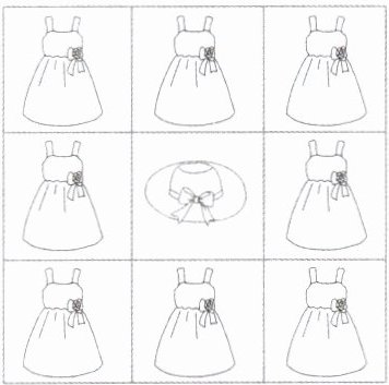 (3)蓝色连衣裙在黄色连衣裙的左边。