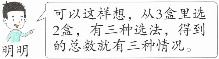 可以这样想,从3盒里选2盒,有三种选法,得到的总数就有三种情况。