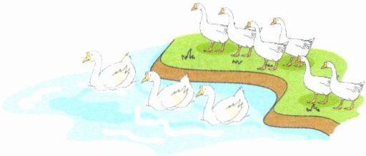 (2)一共有( )只鹅,水里有3只,岸上有( )只。 □-□= □