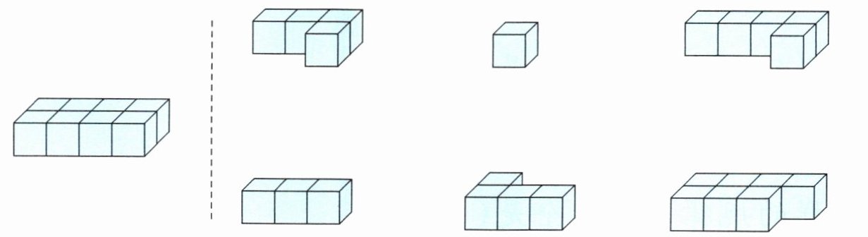 (1)先摆一个长方体,然后在长方体的上面摆一个正方体,最后在正方体的上面摆一个圆柱。