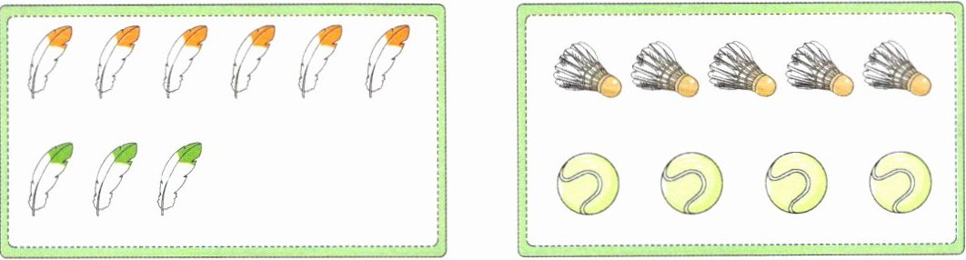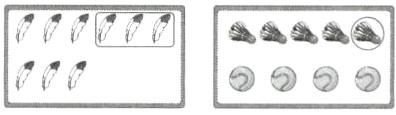 4. 比一比每个框中的上下两行,把多的部分圈出来。