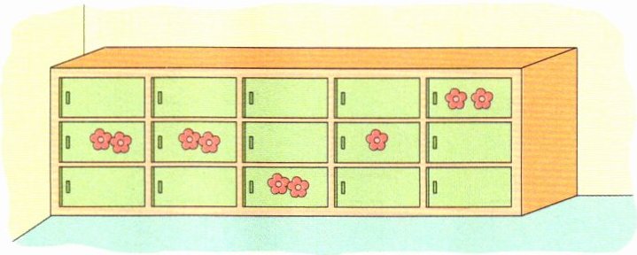 班级后面的储物格共有(1 2 3)层,东东的储物格得到一个奖励标志,东东的储物格在第(1 2 3)层。