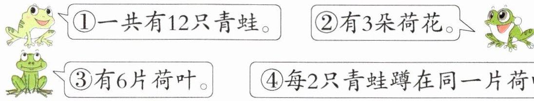 ③有6片荷叶。 ④每2只青蛙蹲在同一片荷叶上。