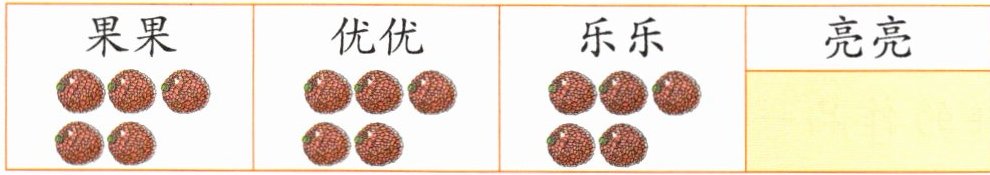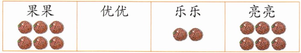 (2)如图,老师重新平均分了一次。分完后,果果和亮亮还没有吃,优优已经吃了(