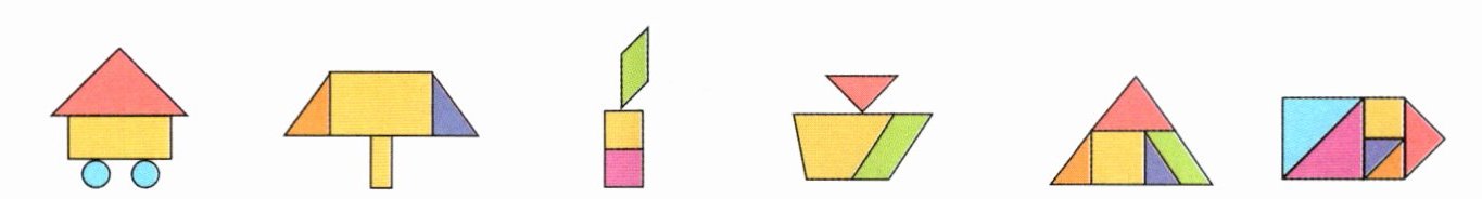 4. 下面的图形,哪个是用一套七巧板拼成的?画“√”。
