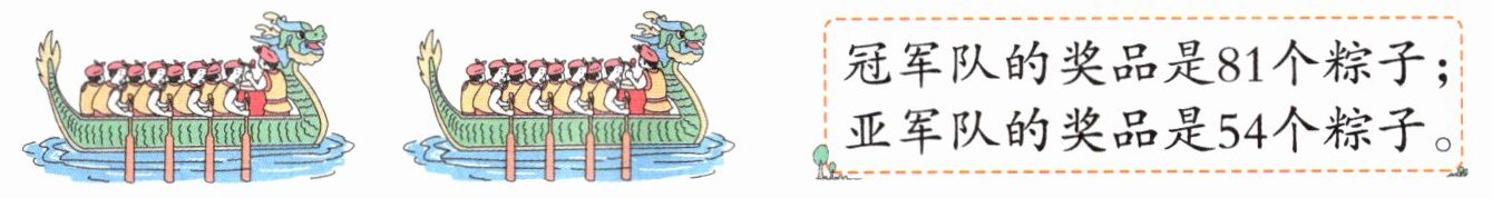 冠军队的奖品是81个粽子;亚军队的奖品是54个粽子。