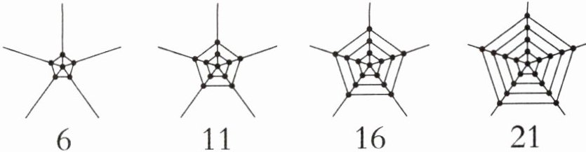 4. (探索规律)根据下图中点子数的变化规律,请你算一算,第 8 幅图中的点子数应该是(
