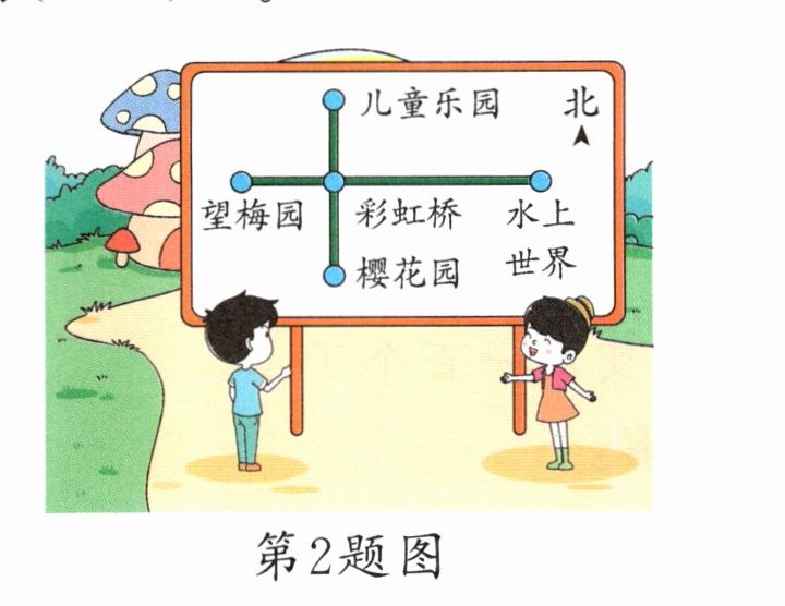 (2)从望梅园出发去儿童乐园,应该先往