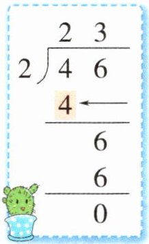 3. 李老师买来 46 瓶饮用水,每个运动员分 2 瓶,可以分给多少个运动员?军军用竖式计算出了结果(如图),竖式中箭头所指的数表示(