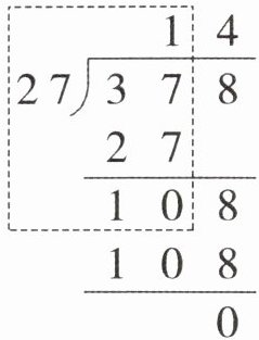2.(无锡惠山真题)一部儿童动画片的时长为378分钟,每27分钟编成一集。一共可以编成多少集?如图竖式中,虚线框出的部分表示(